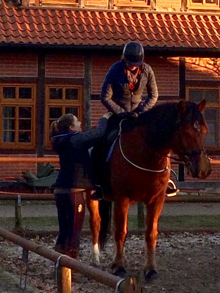 Balance und Kommunikation finden nicht nur am Boden statt, sondern sind auch beim Reiten elementar. Besonders Pferden, die nicht in Balance sind, macht ein Reiter, der ebenfalls nicht in Balance sitzt und sich somit nicht im gemeinsamen Gleichgewicht-/Takt zum Pferd bewegt, zu schaffen. Aus diesem Grund habe ich mich 2018 zur Centered Riding Instruktorin ausbilden lassen (aktuell Level 2). Sally Swift entwickelte Centered Riding u.a. aus Thai Chi und der Alexander-Technik. Bewusst Sein – Fragen – Zulassen. Atmen.