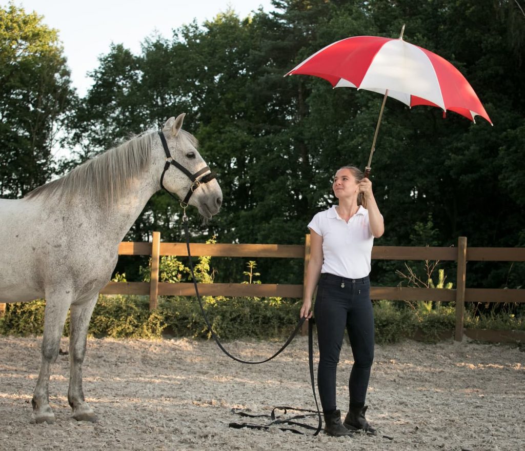 Wir müssen dem Pferd zeigen, wie es auf ungewohnte und fremde Reize gelassen reagieren kann.