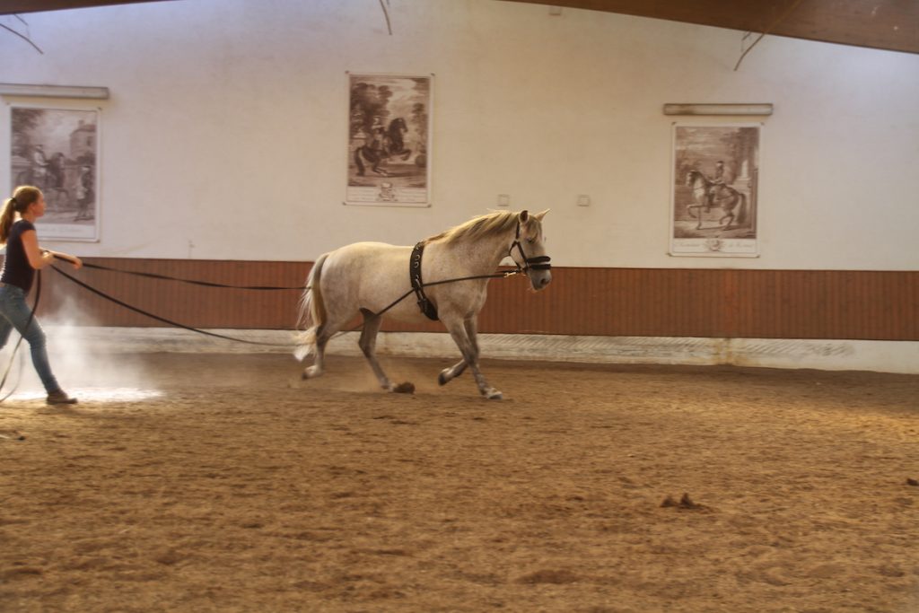 - Unterricht in gymnastizierender Bodenarbeit an der Hand: Ursula Ursprung, Lizensierte Trainerin Bent Branderup /Akademische Reitkunst