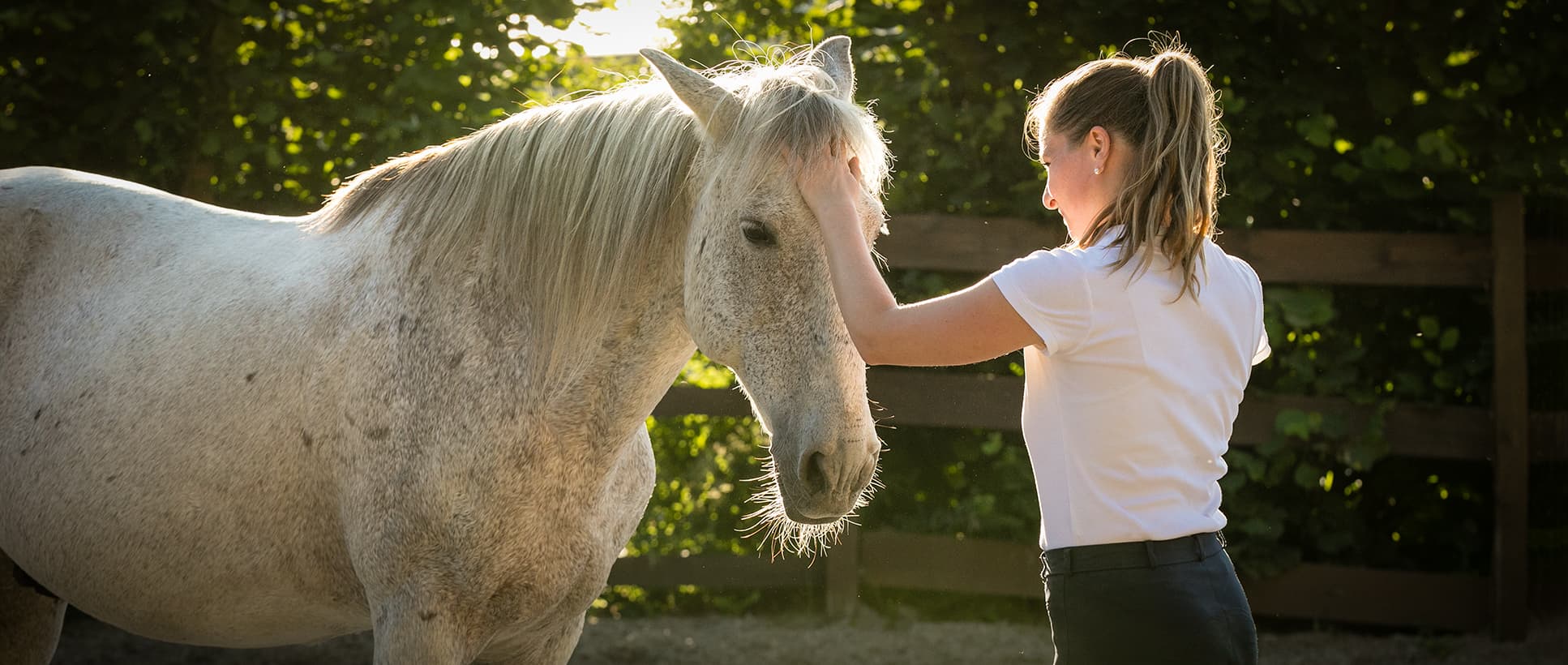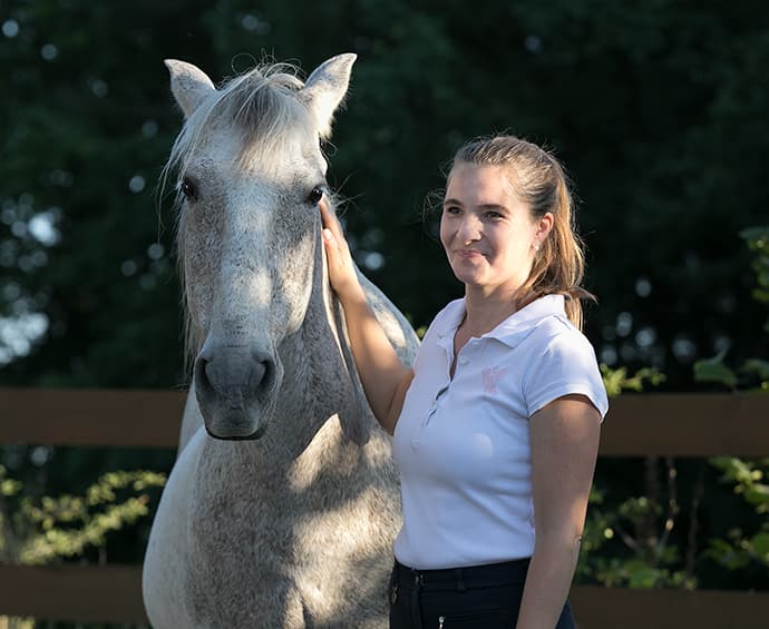 „Grey war mit all seinen Erfahrungen ein sehr unnahbares Pferd, welches viel Geduld abverlangt. Durch positives Einwirken hat Eva ihn zu einem deutlich selbstbewussteren Reitpferd verwandelt.“