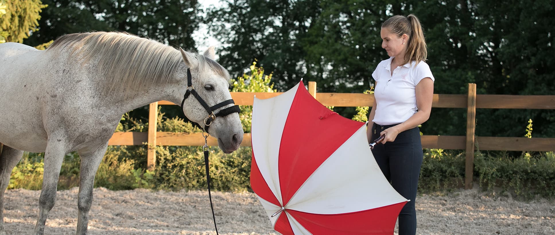Wir müssen dem Pferd zeigen, wie es auf ungewohnte und fremde Reize gelassen reagieren kann.
